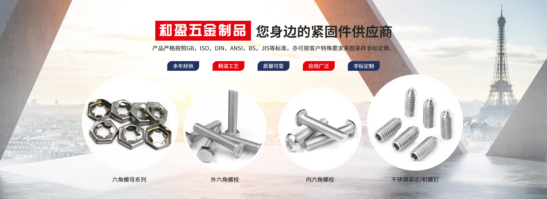 興化市和盈五金制品有限公司創(chuàng)建于2010年,坐落在全國不銹鋼名鎮(zhèn)———江蘇戴南。本公司集當(dāng)?shù)夭讳P鋼優(yōu)勢(shì)和全國銷售網(wǎng)點(diǎn),以不銹鋼緊固件產(chǎn)品為主體的企業(yè)。我們將始終如一的堅(jiān)持以客戶為中心,堅(jiān)持以品質(zhì)取勝的發(fā)展戰(zhàn)略,依靠科學(xué)技術(shù)不斷創(chuàng)新。秉承這種精神,我們一起和諧合作,共贏未來。產(chǎn)品嚴(yán)格按照GB,ISO,DIN,ANSI,BS,JIS等標(biāo)準(zhǔn),亦可按客戶特殊要求來圖來樣非標(biāo)定做。產(chǎn)品廣泛應(yīng)用......